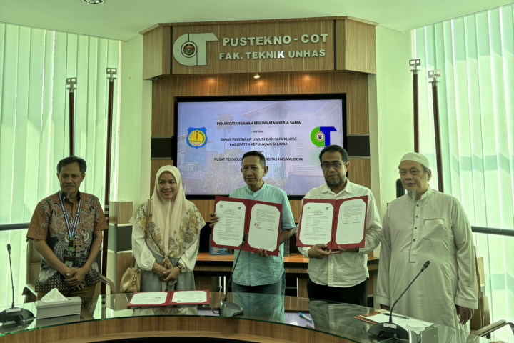 Pada hari Jumat tanggal 24 Oktober 2025, bertempat di Ruang Rapat Utama Pustekno-CoT lt.1 Gedung CoT, Kepala Pusat Teknologi - Center of Technology (PUSTEKNO-CoT) Universitas Hasanuddin, Dr. Eng. Ir. Muhammad Ramli, MT. menerima kunjungan dari Dinas Pekerjaan Umum dan Tata Ruang Kabupaten Kepulauan Selayar.